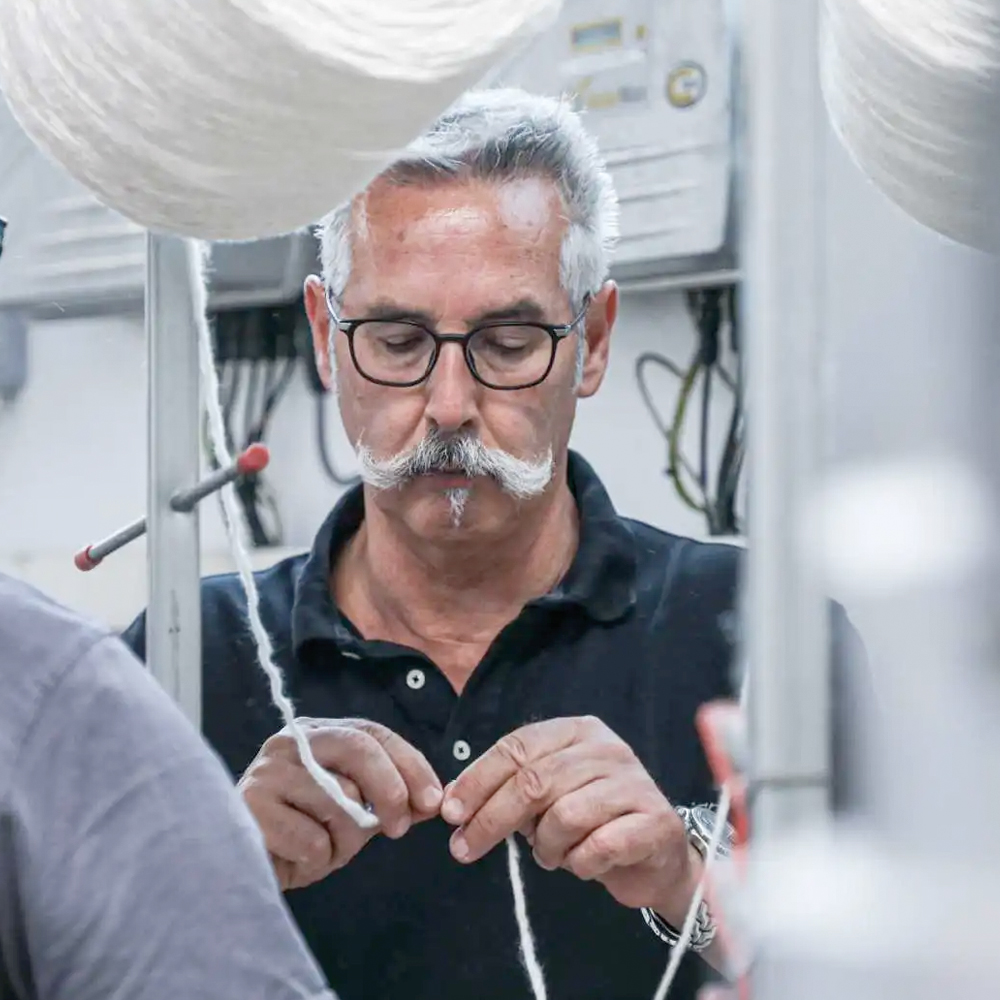 Für die Herstellung der Buckshülle werden Baumwollfaser und Polymilchsäure in einem speziellen Verfahren versponnen und dann in unserer Produktion zu einem festen, stabilen Schlauch verstrickt.